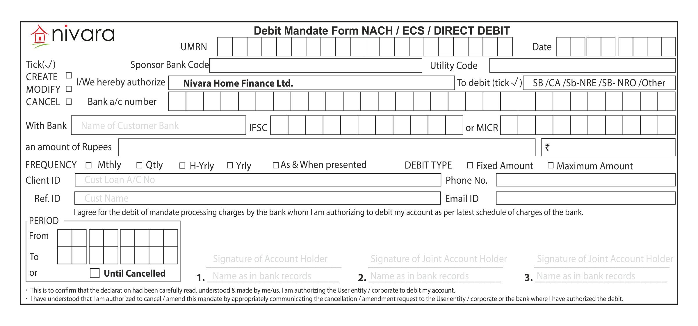 ECS Mandate Form